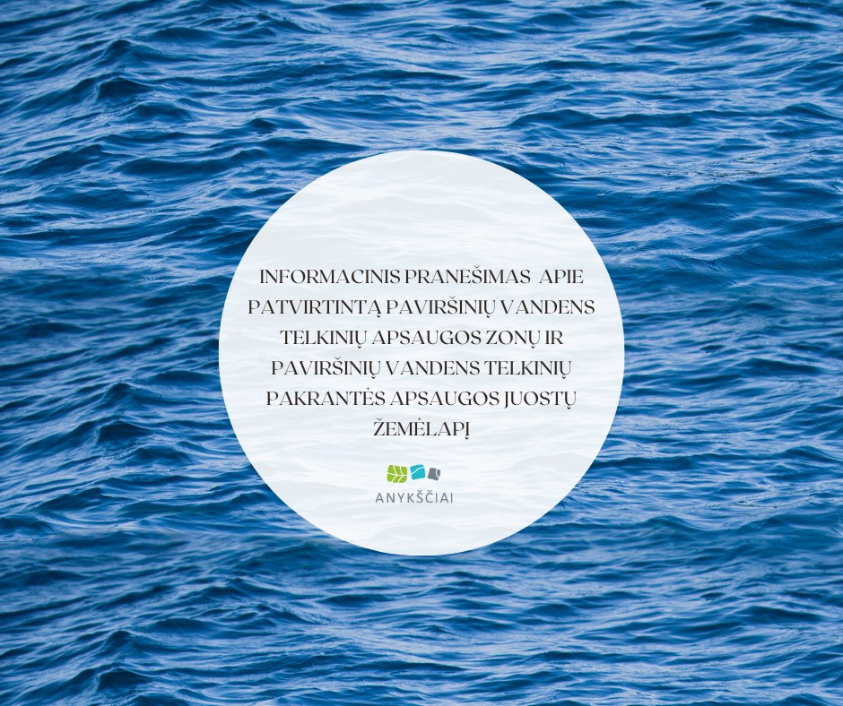 Informacinis pranešimas apie patvirtintą paviršinių vandens telkinių apsaugos zonų ir paviršinių vandens telkinių pakrantės apsaugos juostų žemėlapį