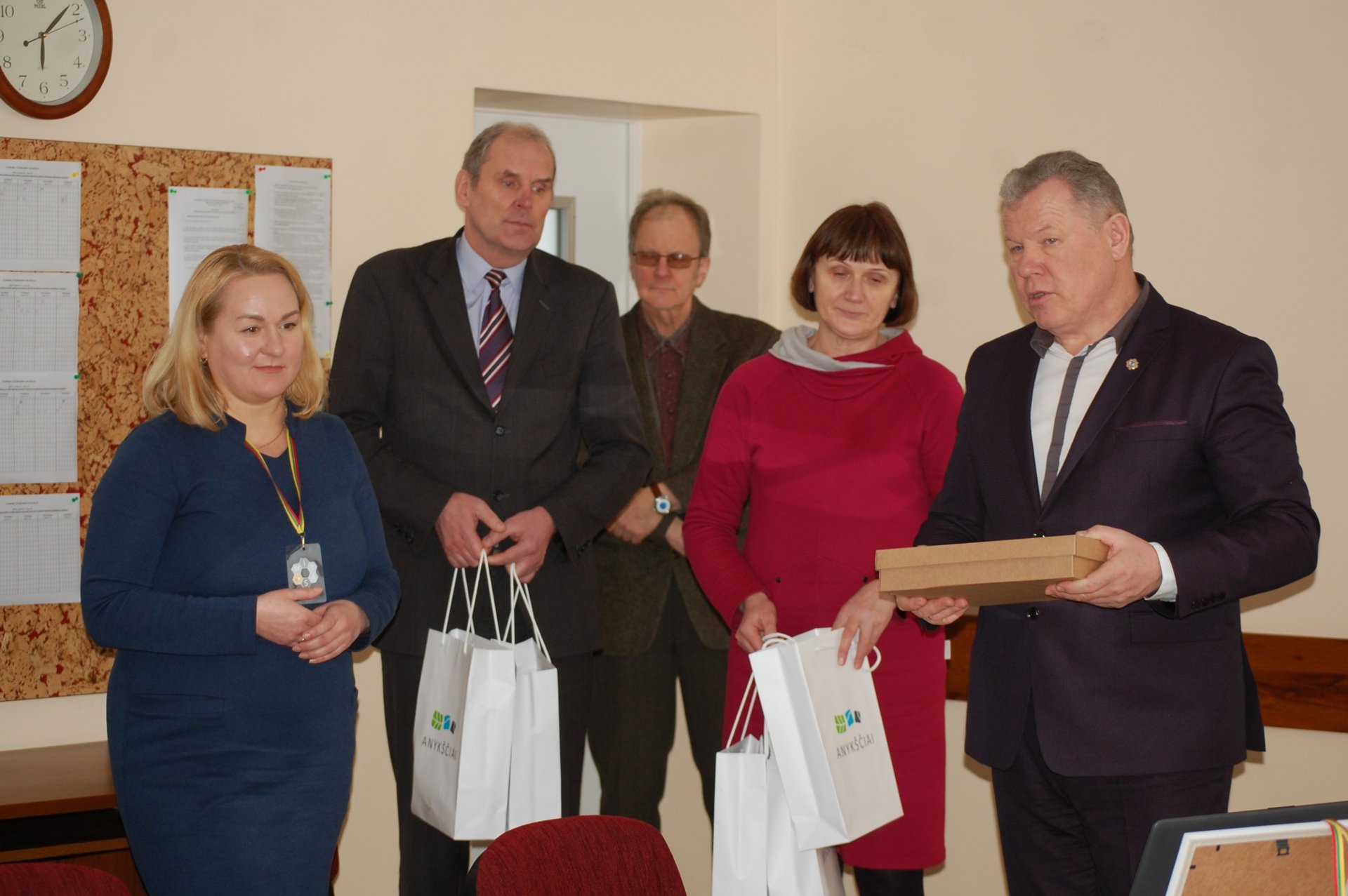 Sausio 31 d. A. Vienuolio progimnazijoje vyko „Samsung“ projekto rezultatų pristatymas, kuriame dalyvavo Anykščių rajono savivaldybės Meras Kęstutis Tubis, administracijos direktorius Audronius Gališanka ir Švietimo skyriaus vyriausioji specialistė, atliekanti vedėjo funkcijas, Nijolė Pranckevičienė.