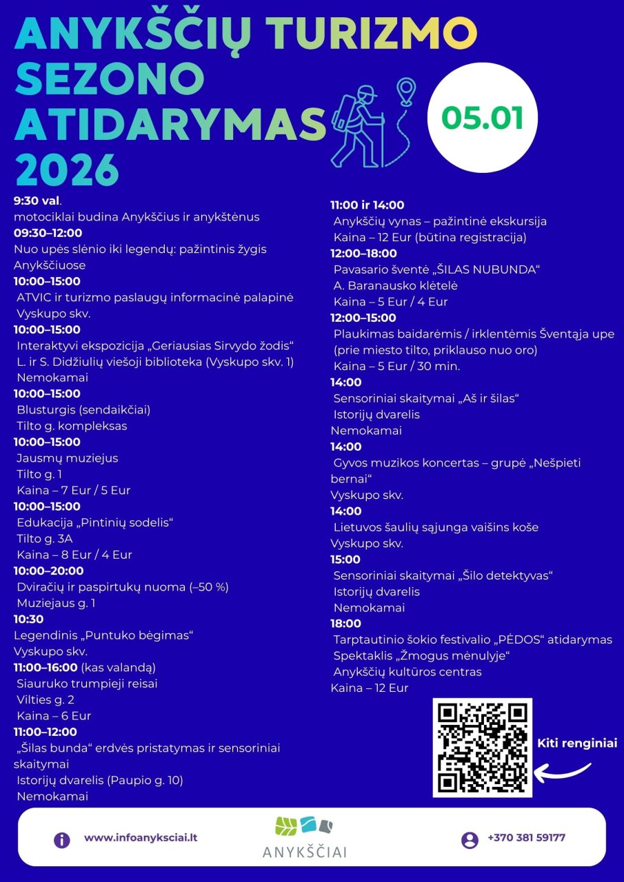 Nors Anykščiai svečių laukia ištisus metus, gegužės 1-oji žymi ypatingą virsmą. Tai diena, kai miestas oficialiai nusimeta pavasarinį santūrumą ir atveria visus kelius į nuotykius: nuo sraunios Šventosios bangų iki kultūrinių patirčių, kurios šį sezoną bus dar ryškesnės. Anykščiai kviečia ne tik atvykti, bet ir pasinerti į kurortinį ritmą, kuris geriausiai pajuntamas čia pasilikus ilgiau.