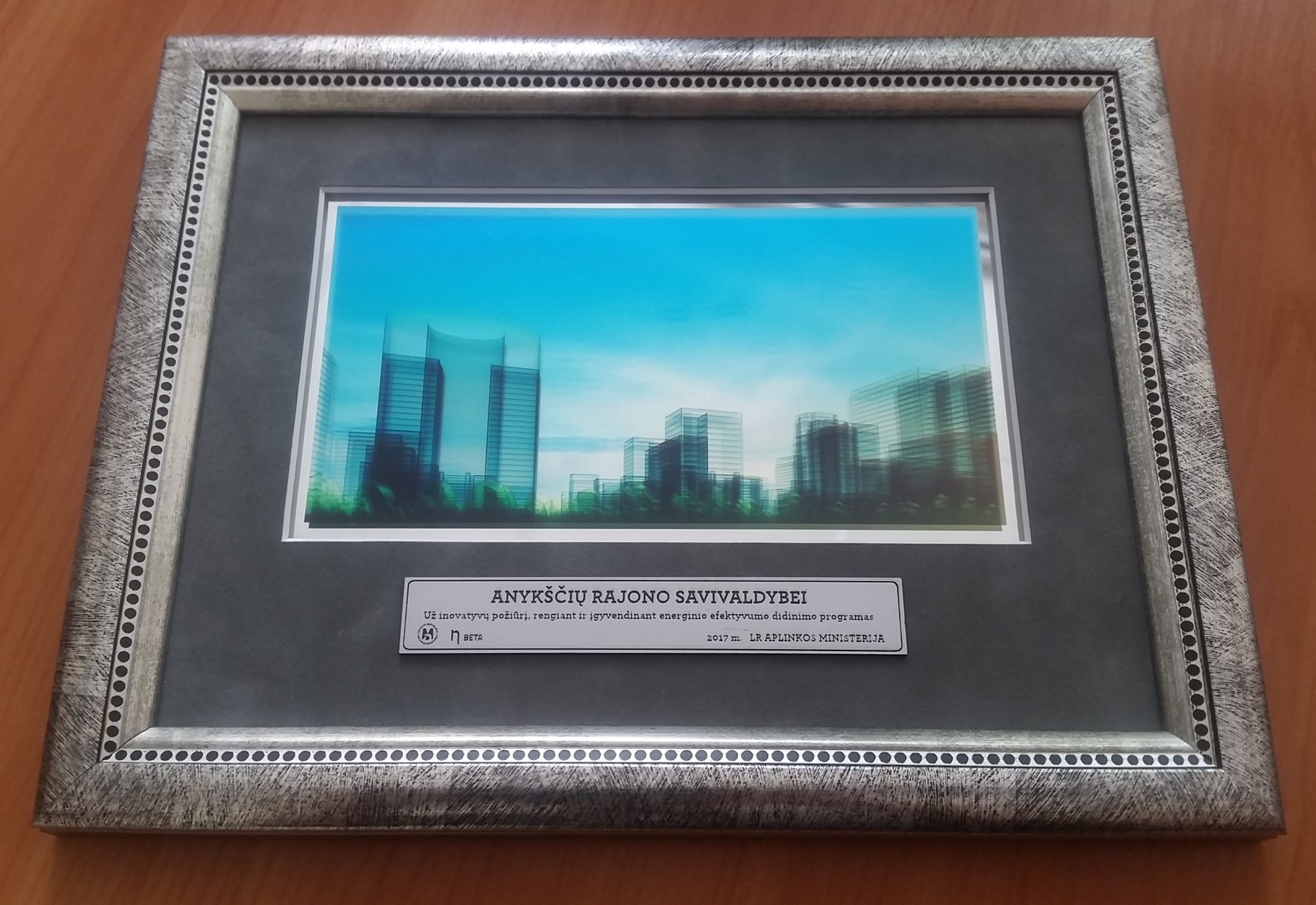 Susitikimo metu Anykščių rajono savivaldybei Aplinkos ministerijos atstovai įteikė padėką už inovatyvų požiūrį rengiant ir įgyvendinant energinio efektyvumo didinimo programas.