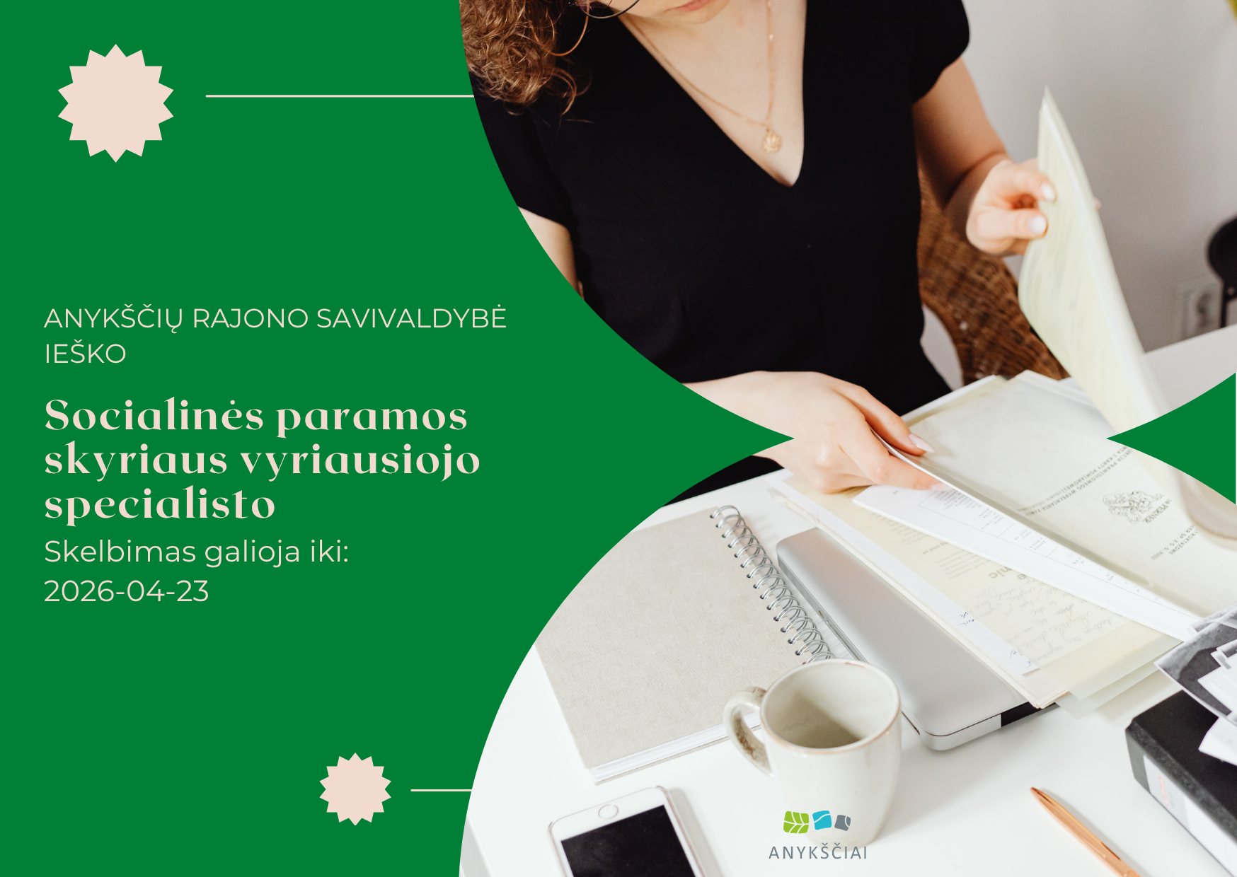 Ieškomas Socialinės paramos skyriaus vyriausiasis specialistas!