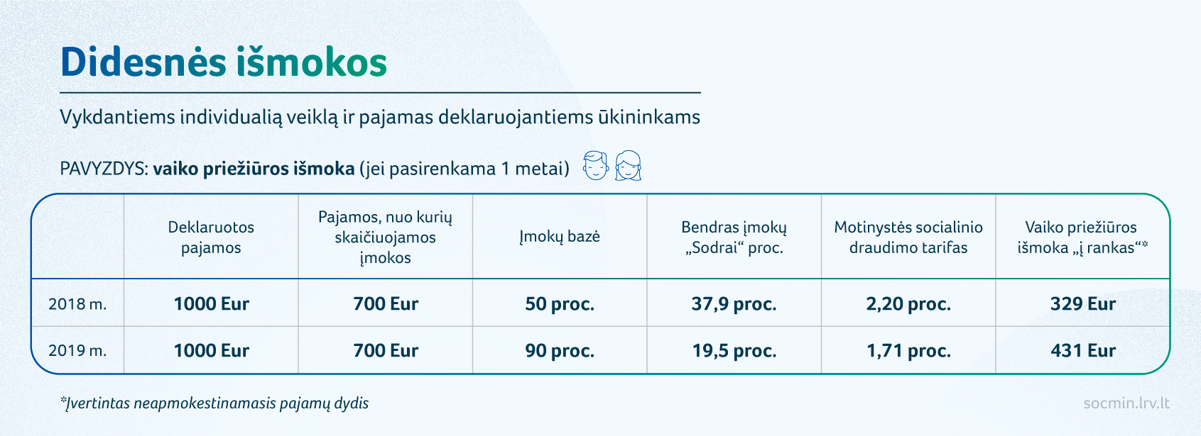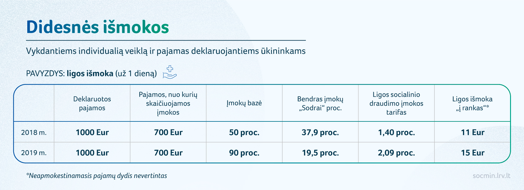 Tai reiškia, kad nors mokestinė našta individualiai dirbantiems asmenims ir pajamas deklaruojantiems ūkininkams išliko panašaus lygmens, tačiau išmokas jie gaus didesnes – tai lemia apmokestinamosios bazės išplėtimas.