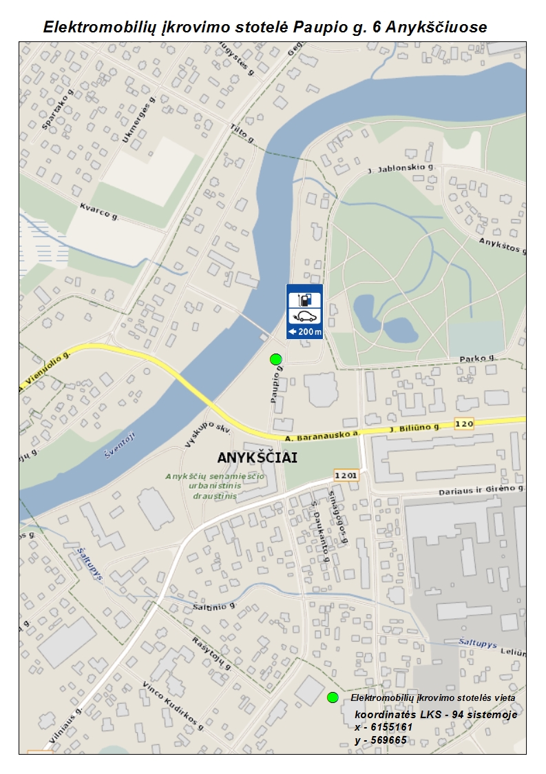 Lietuvoje augantis elektromobilių skaičius skatina jų įkrovimo aikštelių atsiradimą. Tenkinant vietos gyventojų bei atvykstančių miesto svečių poreikius, Anykščiuose įrengta dar viena elektromobilių įkrovimo stotelė Paupio g. esančioje automobilių stovėjimo aikštelėje (pridedamas žemėlapis). Pirmoji įkrovimo aikštelė įrengta šalia SPA Vilnius centro. Vienu metu stotelėje bus galima įkrauti du automobilius, taip pat bus įrengtos ir specialiai paženklintos elektromobiliams skirtos stovėjimo vietos. Mieste įrengta stotelė didelės galios (22 kW vienam automobiliui) .