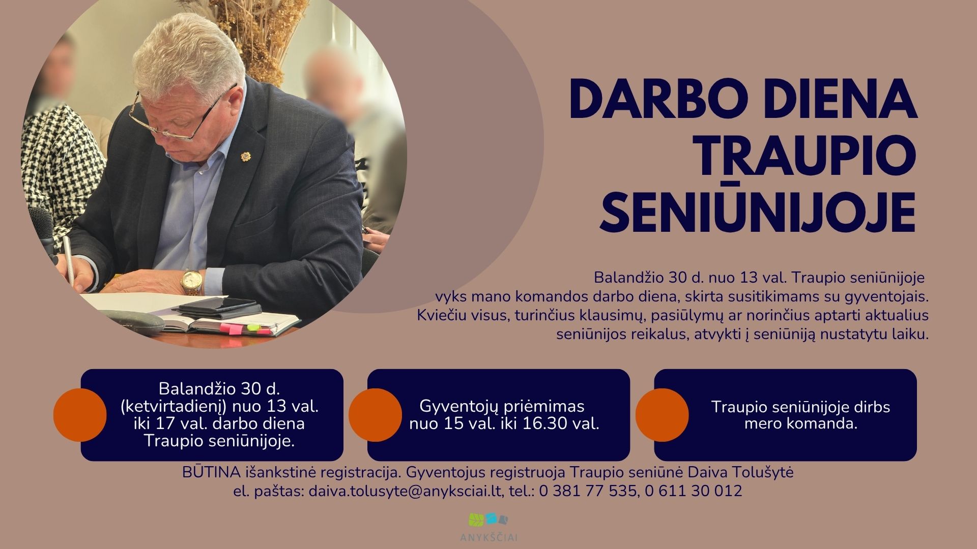 Kviečiame Jus į atvirą dialogą su Anykščių rajono savivaldybės vadovais. Tai geriausias laikas išsakyti savo pastebėjimus, pasidalinti idėjomis ar užduoti rūpimus klausimus tiesiogiai. Kurkime seniūnijos ateitį kartu!