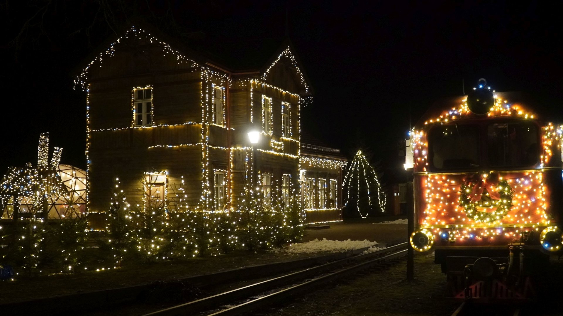 Pasipuošusi Lietuvos Kalėdų sostinė – Surdegis – jau laukia keleivių. Čia įrengtas visas Kalėdinis pasakų miestelis – Kalėdų senelio rezidencija, edukacijų erdvė, nykštuko kepurė primenanti Kalėdinė eglė. Siauruko traukiniai jau spindi šventinėmis girliandomis bei šviesomis.