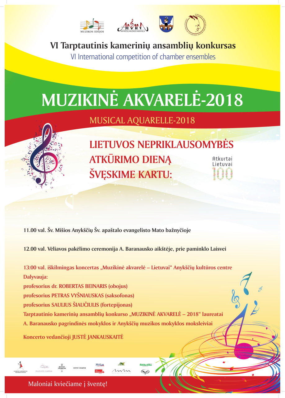 13 val. – Iškilmingas koncertas „Muzikinė akvarelė – Lietuvai“ Anykščių kultūros centre