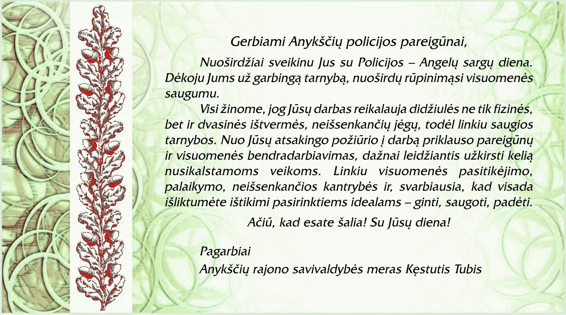 Mero sveikinimas Policijos (Angelų sargų) dienos proga