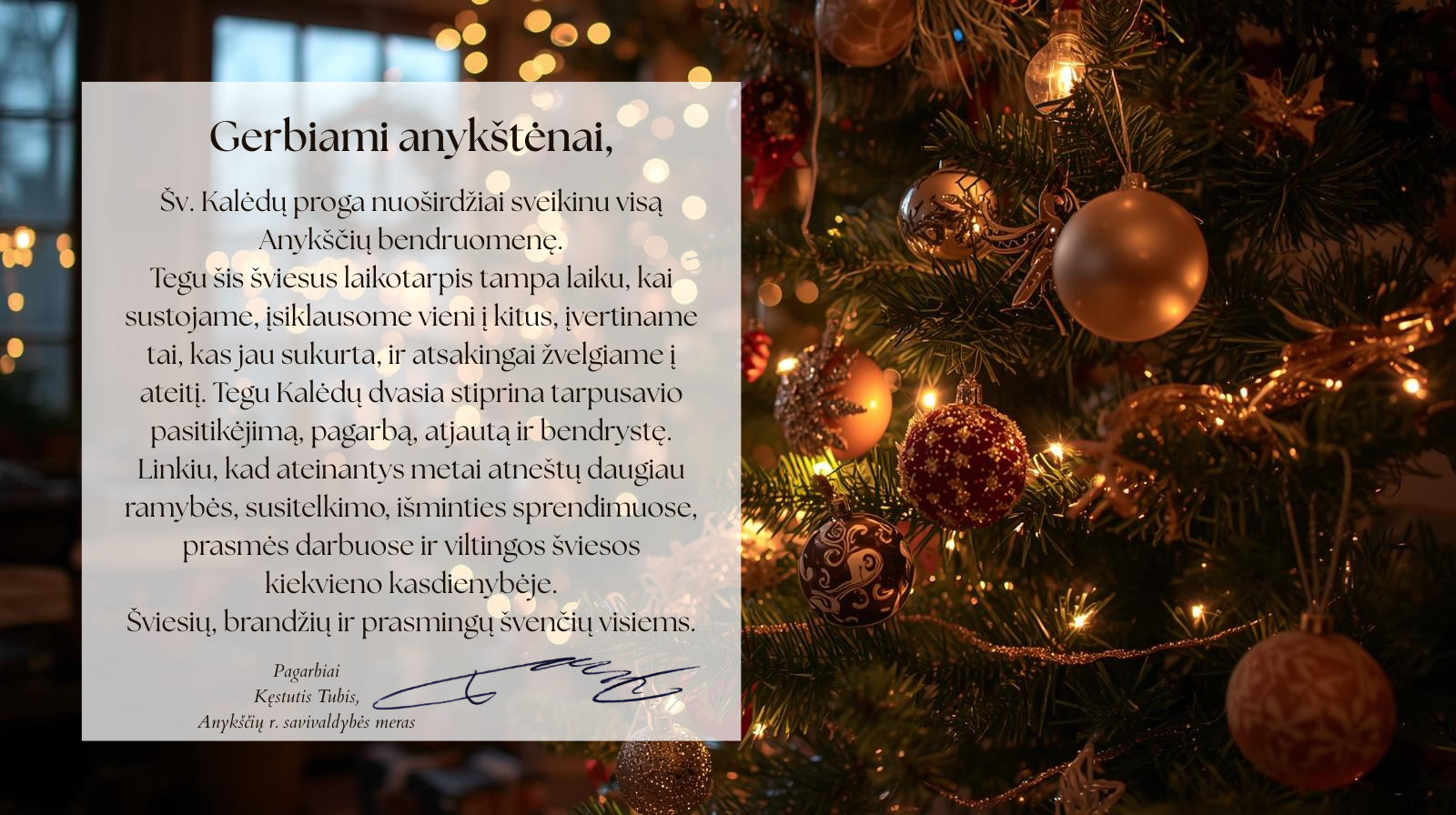 Mero sveikinimas šv. Kalėdų ir Naujųjų metų proga