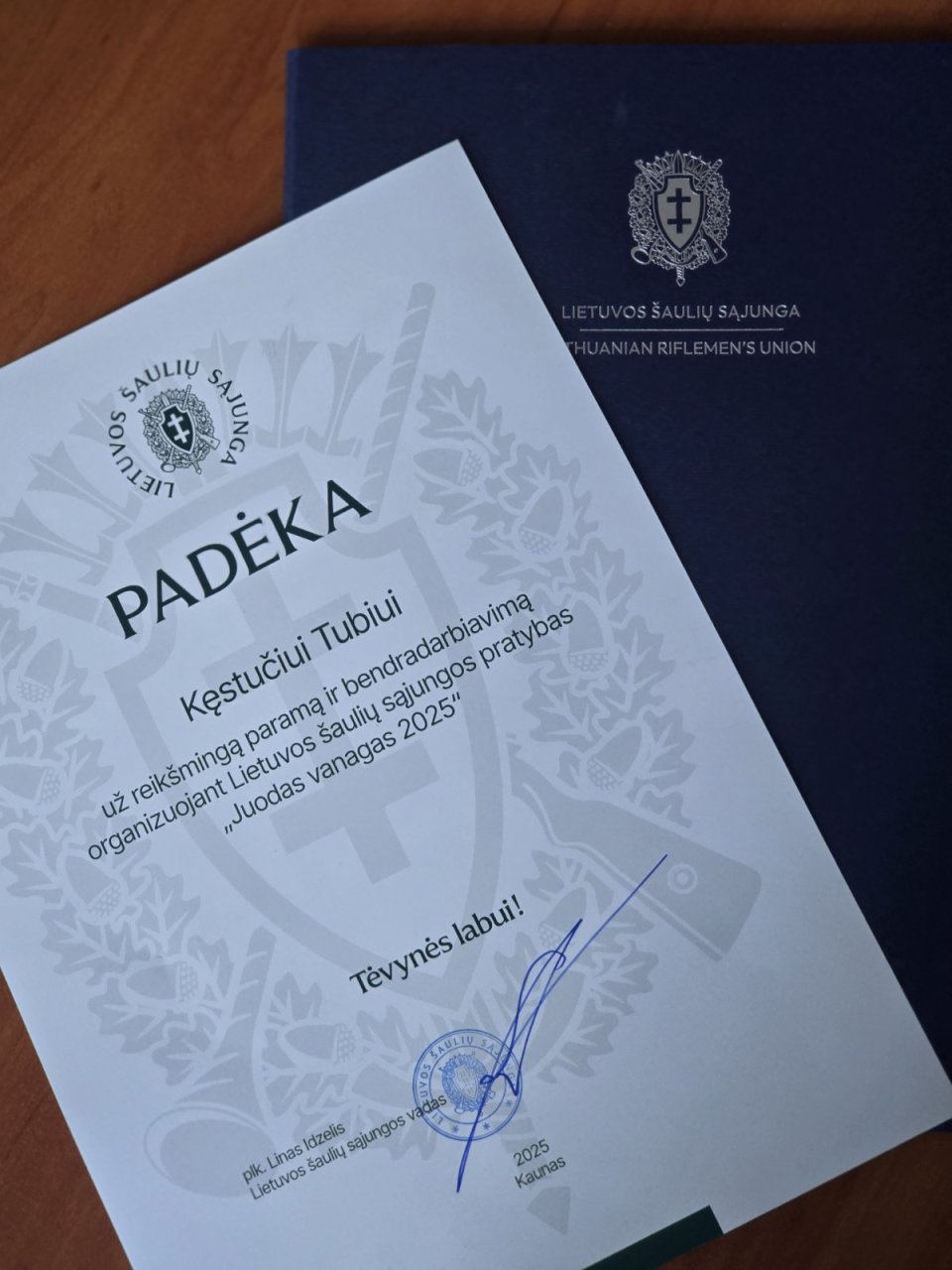 Vizito proga rinktinės vadas J. Rusteika įteikė oficialią padėką merui Kęstučiui Tubiui už reikšmingą indėlį ir paramą organizuojant pratybas „Juodasis vanagas 2025“. Šios pratybos parodė aukštą pasirengimo lygį ir sėkmingą logistinę sąveiką tarp skirtingų grandžių.