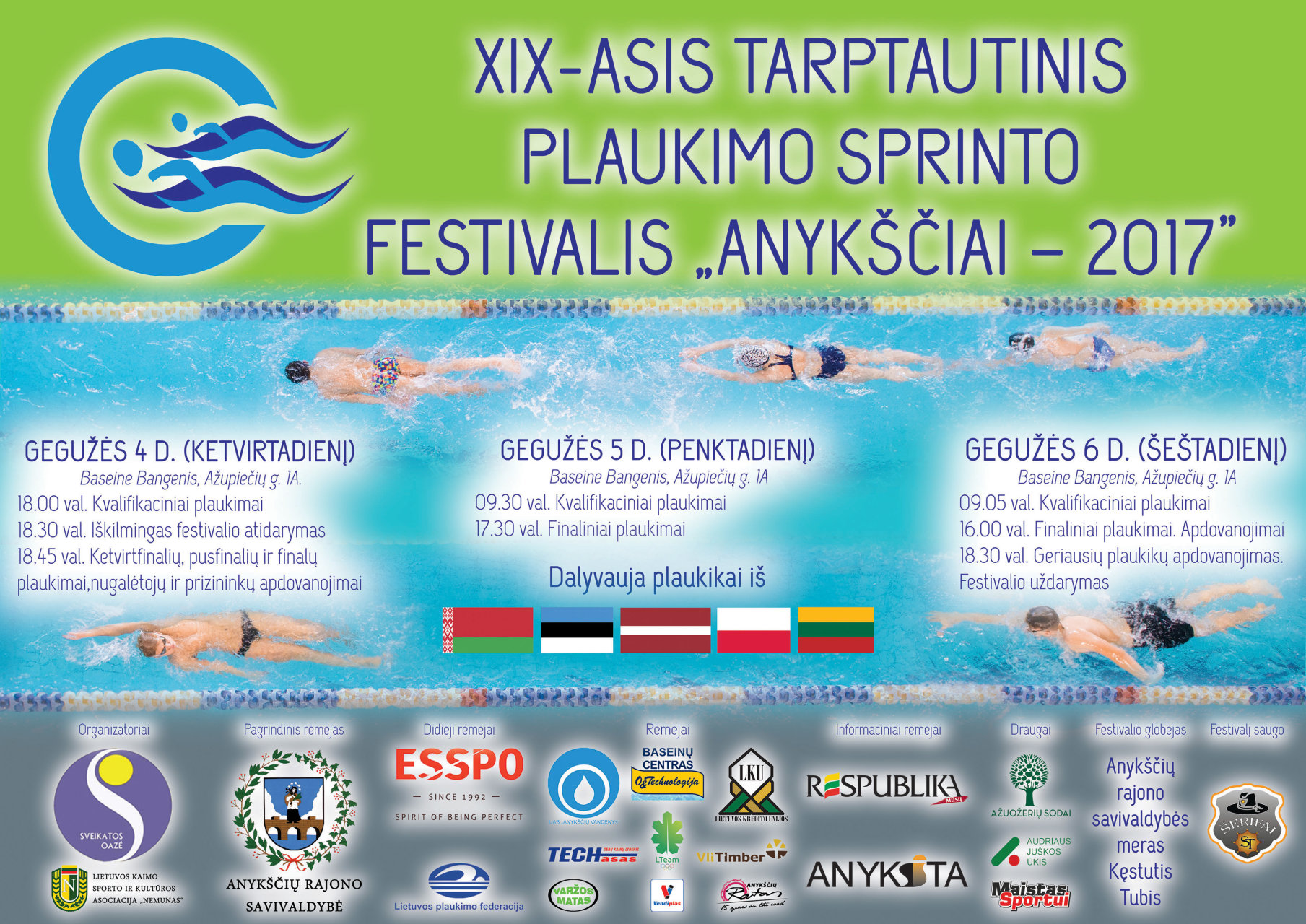Anykščių viešoji įstaiga „Sveikatos oazė“ 2017 m. gegužės 4–6 d. vykdys tradicinį, jau devynioliktą kartą iš eilės rengiamą, tarptautinį plaukimo sprinto festivalį „Anykščiai – 2017“.