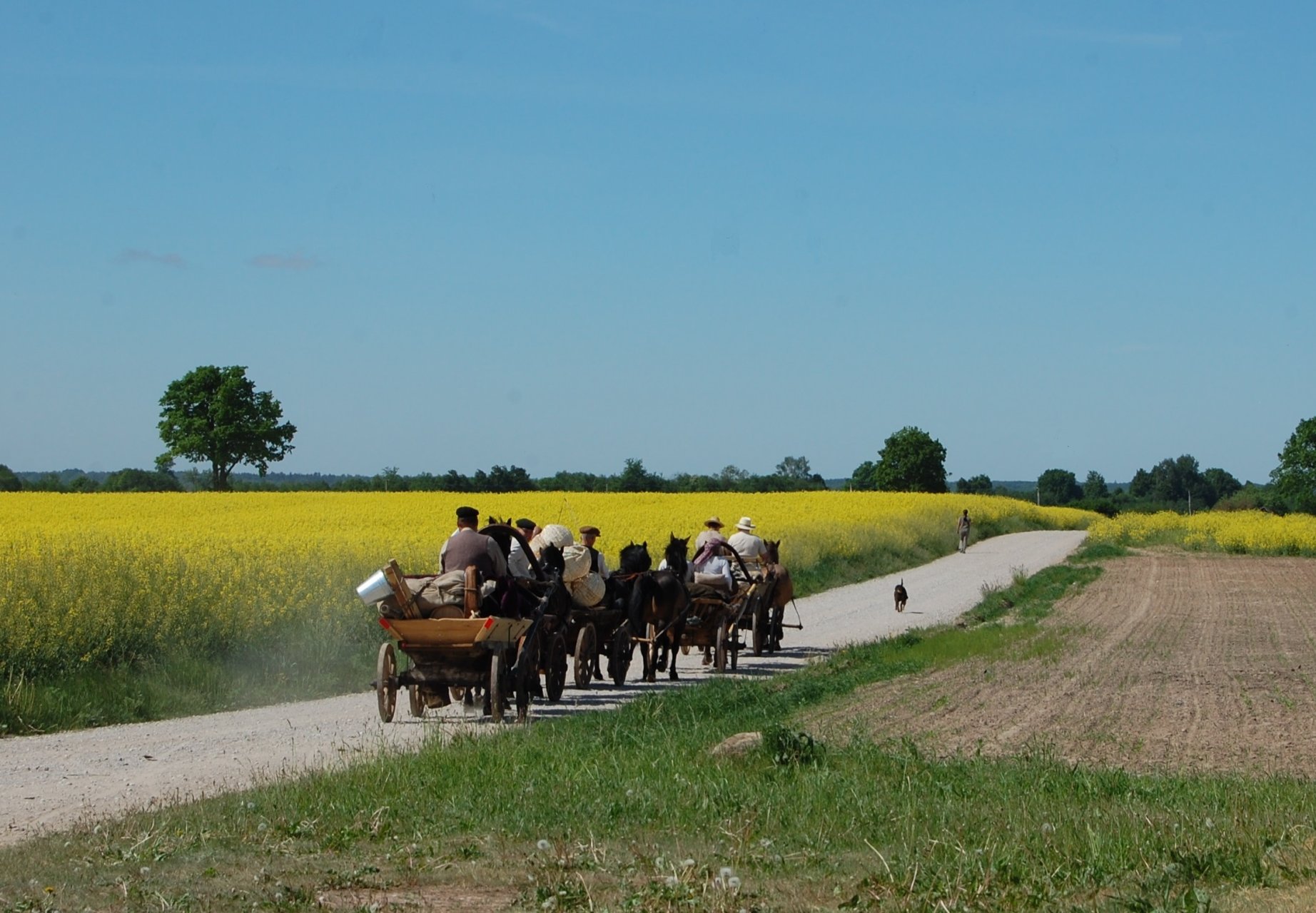 Gegužės 30 d. keliautojai pajudėjo iš Ruoščių kaimo, kur Lietuvos žemėtvarkos institutas 1995 metais oficialiai nustatė ir dviem Aukštaitiją ir Žemaitiją simbolizuojančiais akmenimis pažymėjo Lietuvos geografinį centrą. Kartu su šešiais žemaitukų kinkiniais keliauja ir klounų teatro studija „Dulidu“, kuri, gegužės 30 d., Surviliškio bendruomenei parodys mažojo cirko spektaklį „Profesorius ir blusa“. Susitikti su žygio dalyviais ir pamatyti spektaklį šalia seniausio Lietuvoje veikiančio malūno gegužės 31 d. vakarą (19–20 val.) kviečiama ir Ramygalos bendruomenė. Birželio 1 d. susitikti su žygio dalyviais ir pamatyti spektaklį taip pat bus galima ir Traupyje (Anykščių r.).