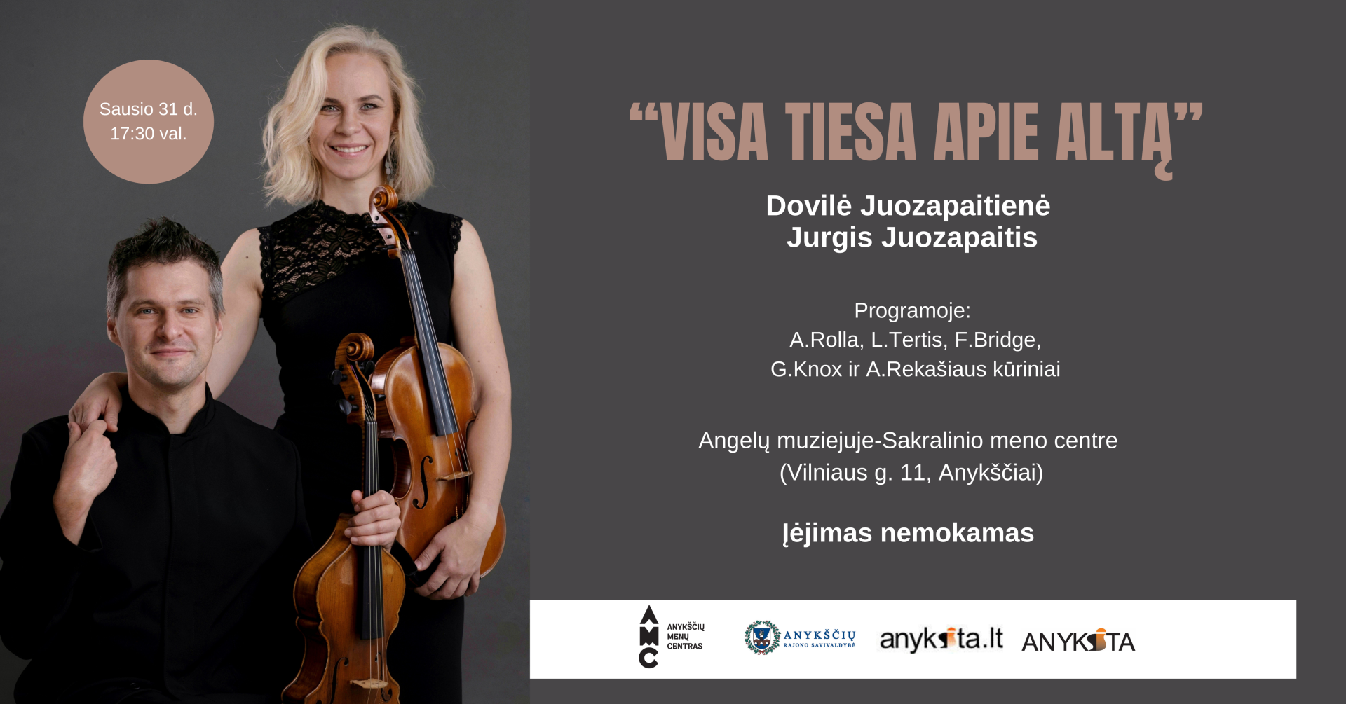 Š. m. sausio 31 d. 17:30 val. Angelų muziejuje-Sakralinio meno centre (Vilniaus g. 11, Anykščiai) vyks altų dueto – Dovilės ir Jurgio Juozapaičių – koncertas „Visa tiesa apie altą“.