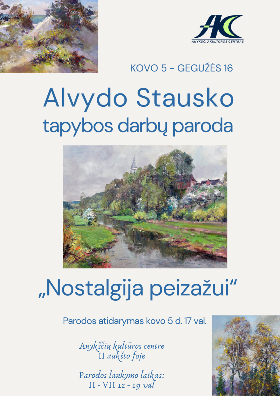Kviečiame į Alvydo Stausko tapybos darbų "Nostalgija peizažui" parodos atidarymą, taip pat pasidalinti renginio informacija.