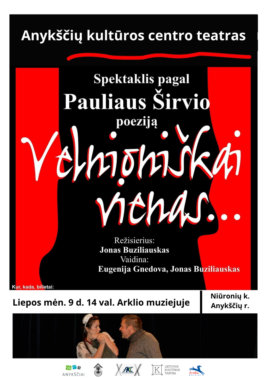 Anykščių kultūros centro teatro spektaklis „Velnioniškai vienas" (pagal Pauliaus Širvio poeziją). Režisierius Jonas Buziliauskas.