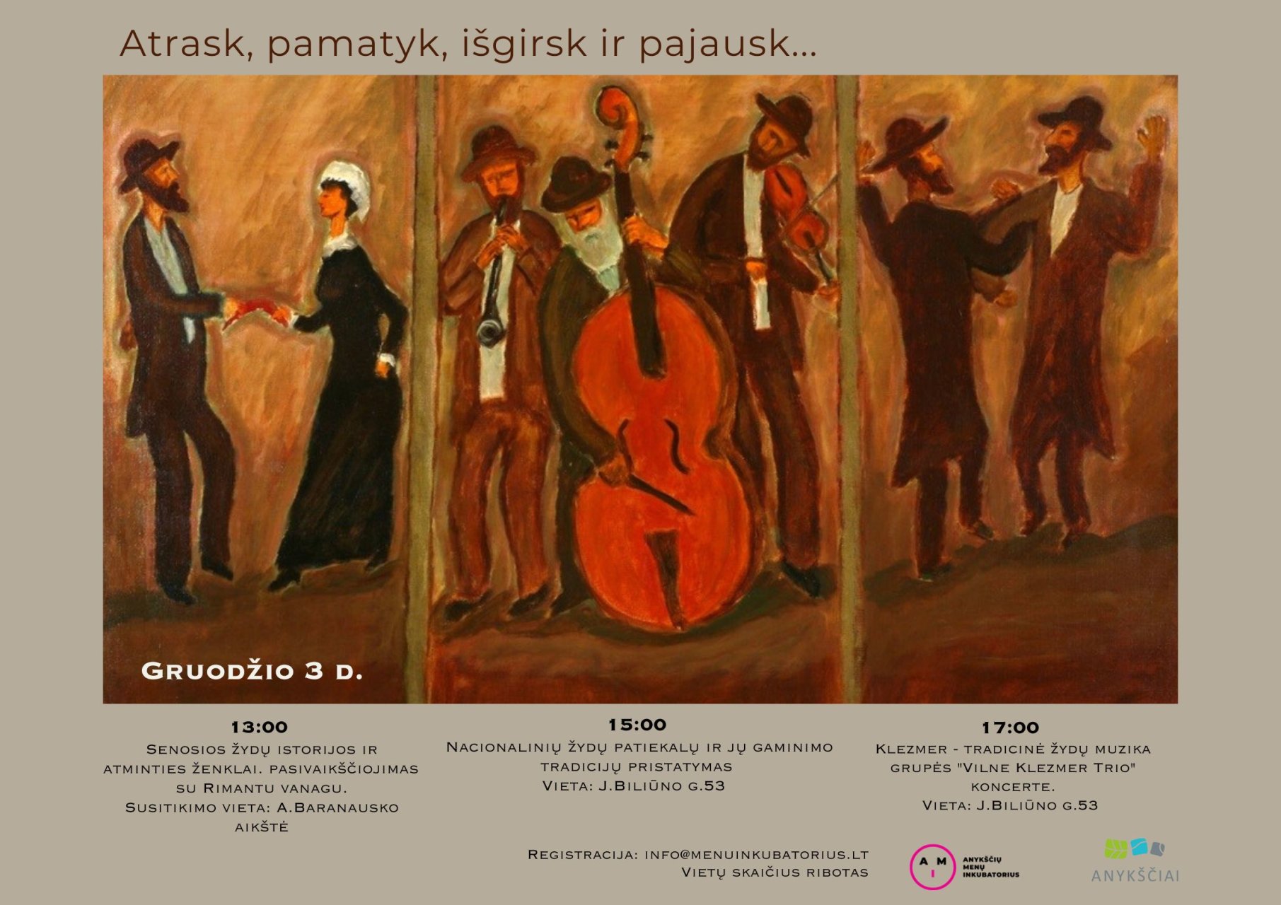 Iki pat XX a. vidurio didelę Anykščių gyventojų dalį sudariusi žydų bendruomenė aktyviai dalyvavo miesto ekonominiame bei kultūriniame gyvenime, išaugino nemažai žymių žmonių. Anykščių miesto raida ir plėtra neįsivaizduojama be žydų. Jų bendruomenė aktyviai prisidėjo prie Anykščių augimo, kultūrinės veiklos. Renginys skirtas pažinti išlikusį materialųjį ir nematerialųjį žydų kultūrinį palikimą, kuris yra sudėtinė Anykščių krašto istorijos ir kultūros dalis.