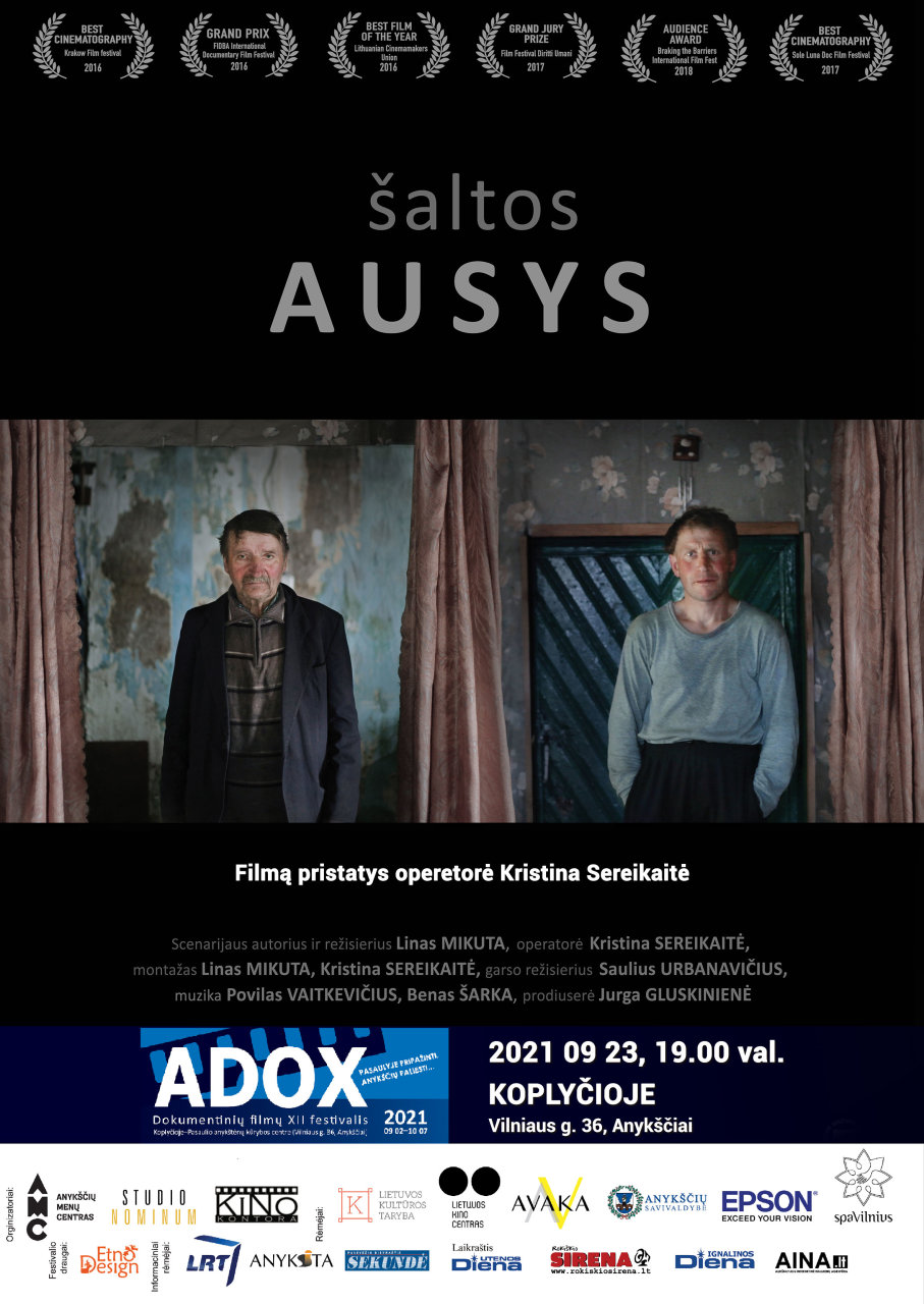 ADOX/ Rugsėjo 23 d., 19.00 val., Anykščių koplyčioje-Pasaulio anykštėnų kūrybos centre (Vilniaus g. 36) filmo „Šaltos ausys“ peržiūra, 2016 m., Lietuva