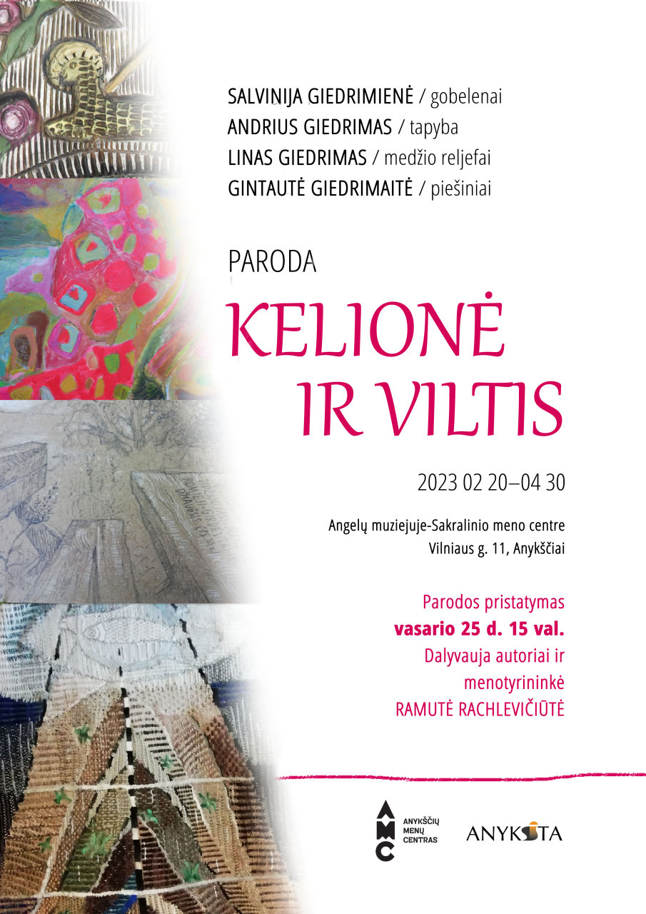 Vasario 25 d.(šeštadienį) 15 val. Angelų muziejuje atidaroma Giedrimų šeimos paroda „Kelionė ir Viltis“. Keturi menininkai yra išskirtinė Lietuvos šeima, kurianti religine tematika. Kviečiame į atidarymą ir susitikimą su autoriais.