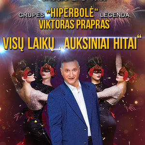 Sausio 27d. 18.00val. Anykščių Kultūros centrą sudrebins grupės „Hiperbolė“ legenda, dainų autorius ir atlikėjas -Viktoras Prapras. „Visų laikų Auksiniai Hitai“- tai dainos, šokio ir muzikos „fiesta“, kurioje skambės visų laikų gražiausi grupės „Hiperbolė“ kūriniai, su kuriais užaugo jau kelios lietuviškos muzikos mylėtojų kartos ir kurie daugeliui primins jaunystę, gražiausius išgyvenimus, dar kartą pakvies patirti teigiamas emocijas. Šį nuotaikingą šou papuoš 30 komplektų spalvingų sceninių rūbų, taip pat visus džiugins koncerto svečiai-TV projekto „Šok su žvaigžde“ dalyviai, o išskirtinis maestro Viktoro Prapro pasirodymas nepaliks salėje abejingų. Būtinai aplankykite šį nuostabų reginį. Gerą nuotaiką garantuojame !