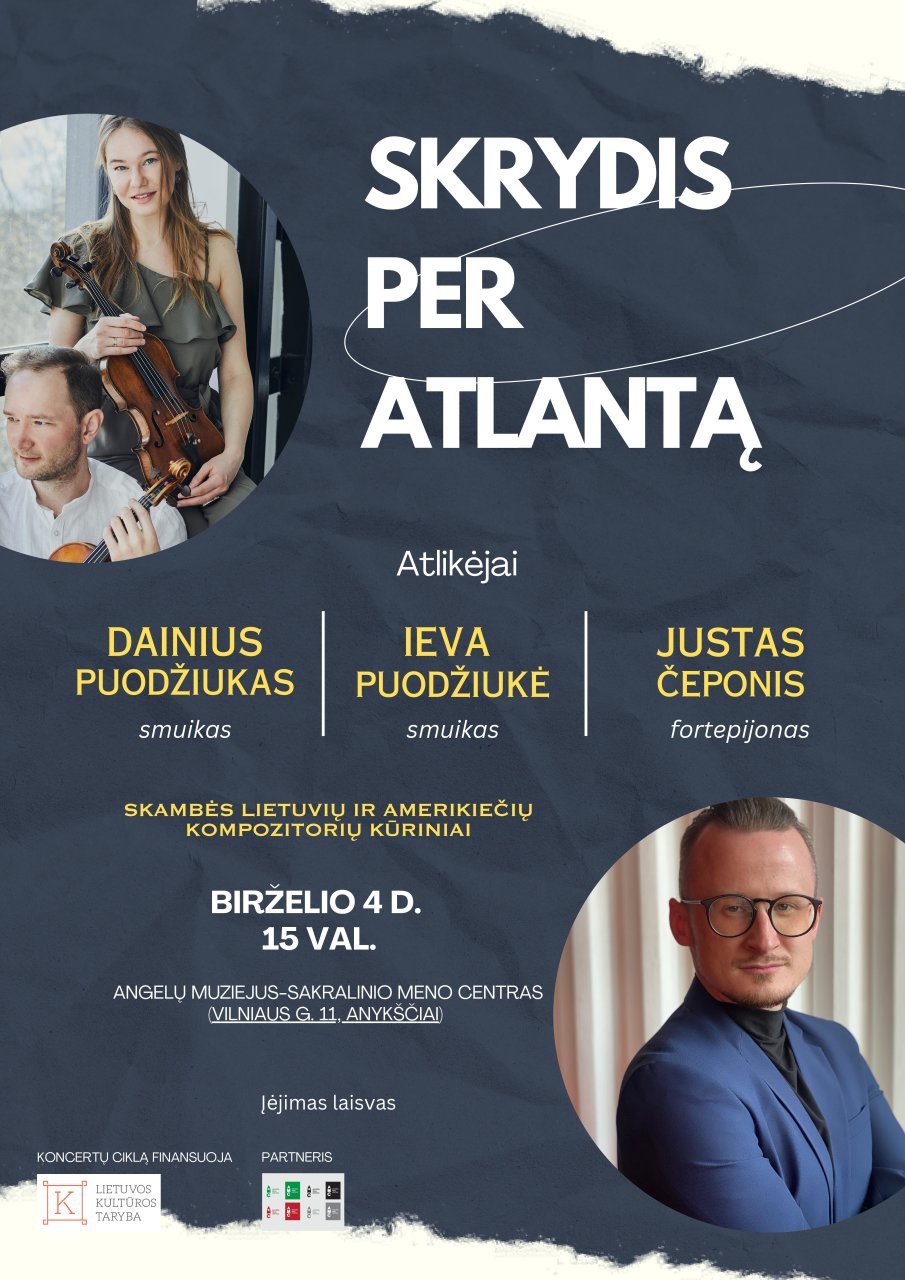 Atlikėjai: Dainius Puodžiukas (smuikas), Ieva Puodžiukė (smuikas) ir Justas Čeponis (fortepijonas)