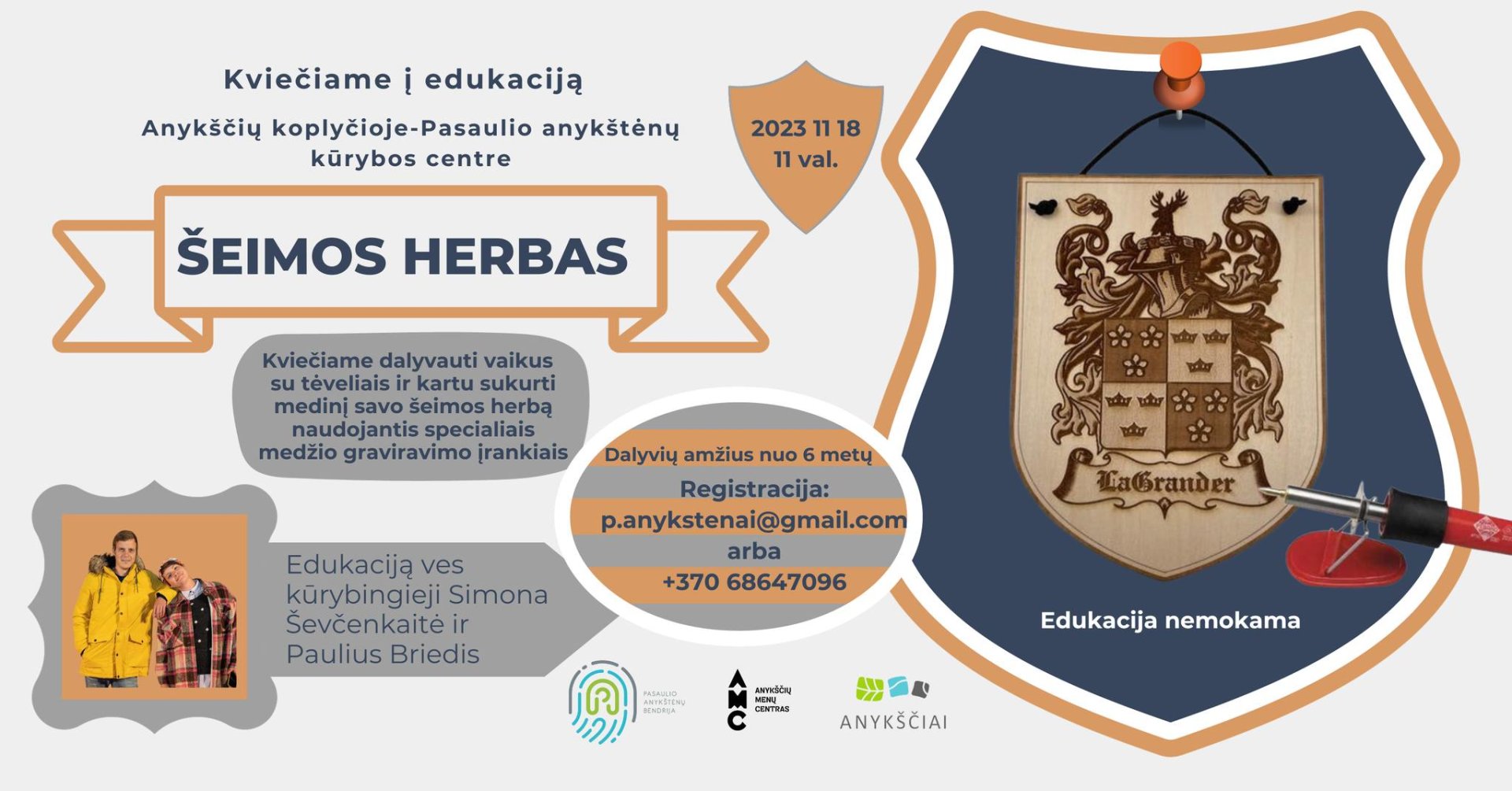 Kviečiame šeimas į edukacinį užsiėmimą „Šeimos Herbas“, vyksiantį lapkričio 18 d. (šeštadienį) 11 val. Anykščių koplyčioje (Vilniaus g. 36)!