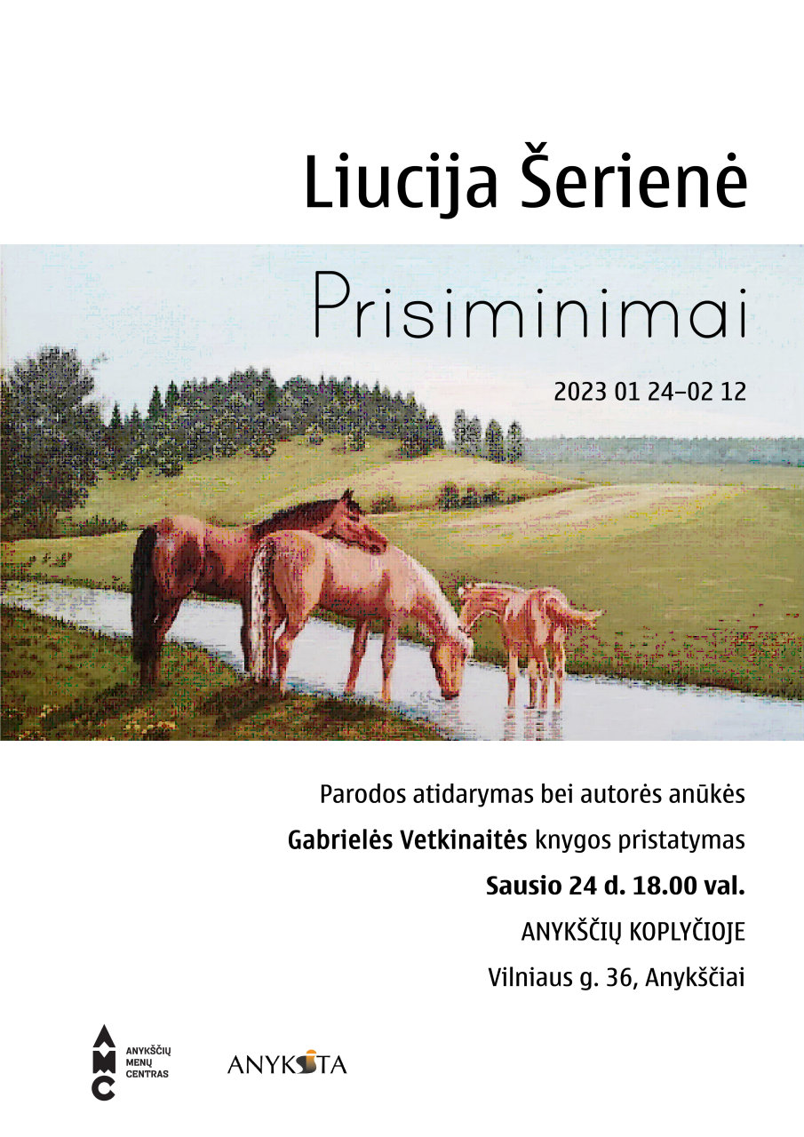 Sausio 24 dieną 18 val. Anykščių Koplyčioje vyks Liucijos ŠERIENĖS parodos „Prisiminimai“ atidarymas.