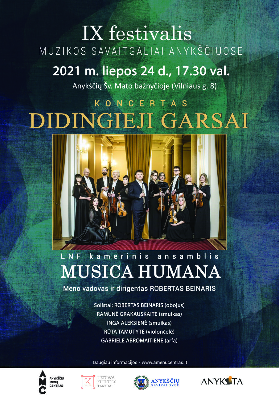 Anykščių miesto šventės metu, liepos 24 d., šeštadienį, 17.30 val. kviečiame į IX-ojo festivalio „Muzikos savaitgaliai Anykščiuose“ ketvirtąjį koncertą „Didingieji garsai“ Anykščių Šv. apaštalo evangelisto Mato bažnyčioje.