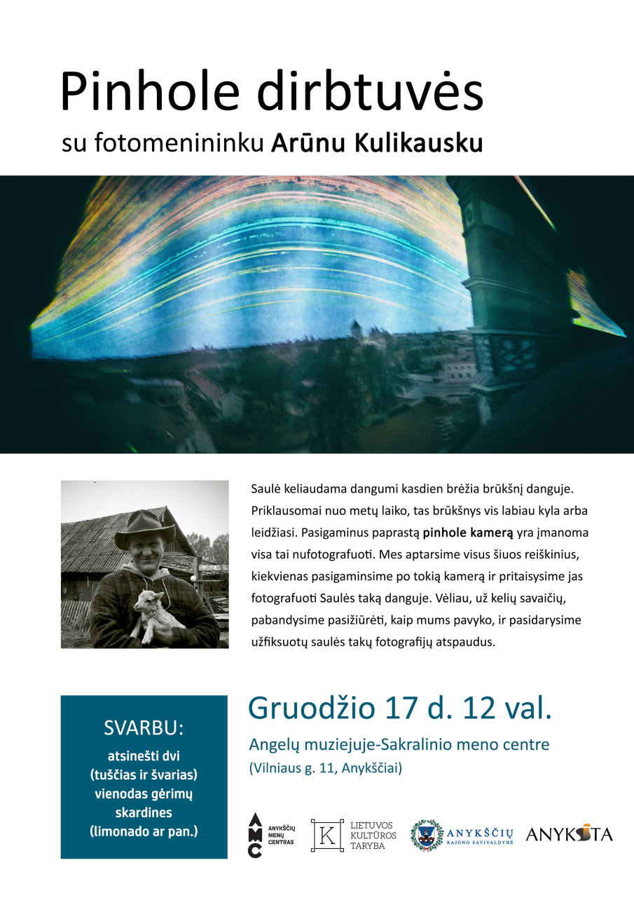 Gruodžio 17 dieną, 12 valandą Angelų muziejuje-Sakralinio meno centre vyks „PINHOLE“ dirbtuvės, kurias ves ARŪNAS KULIKAUSKAS.
