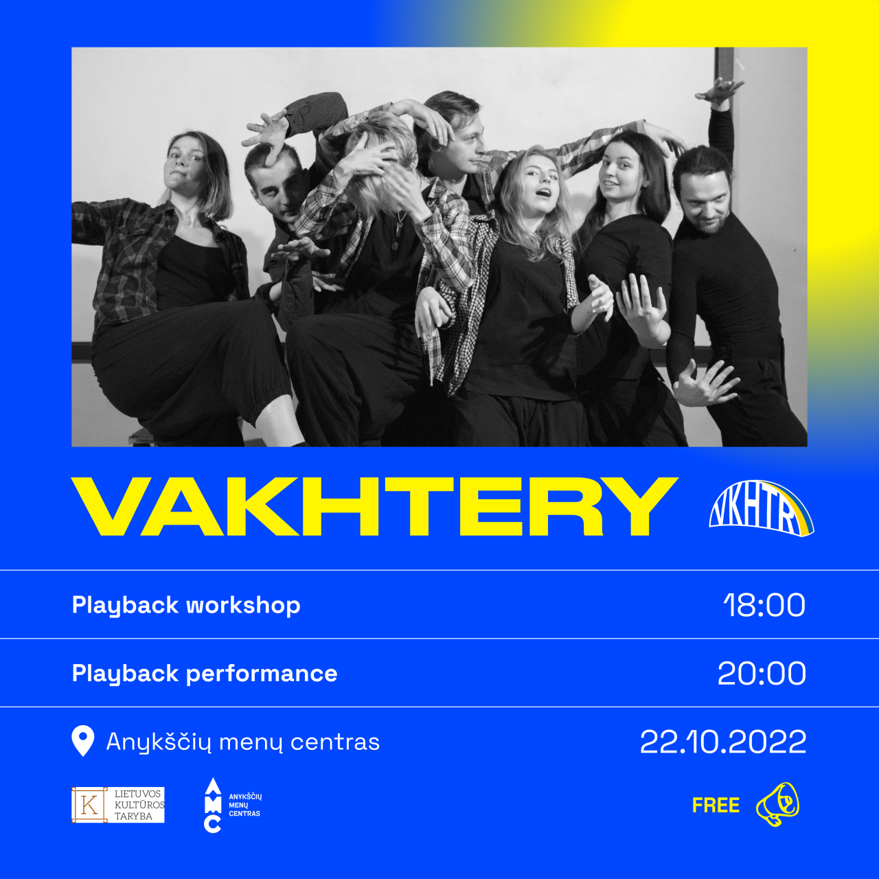 Spalio 22 dieną Anykščių koplyčioje (Vilniaus g. 36) vyks Playback teatro „VAKHTERY“ (Ukraina) pasirodymas ir kūrybinės dirbtuvės.