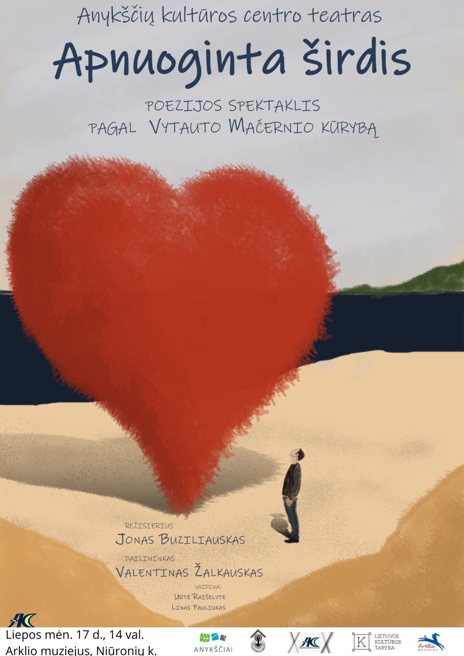 Vasarišką liepos 17-osios popietę, 14 val., kviečiame praleisti su Vytauto Mačernio kūryba! Arklio muziejuje esančiame Striukų sodybos klojime galėsite išvysti Anykščių kultūros centro teatro poezijos spektaklį „Apnuoginta širdis“ (rež. Jonas Buziliauskas).