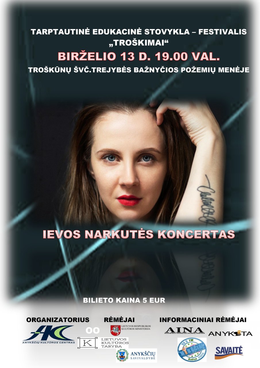 Birželio 13 d. 19 val. Troškūnų Švč. Trejybės bažnyčios požemių menėje Ievos Narkutės koncertas.