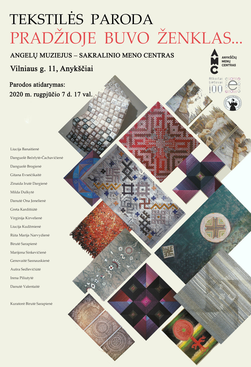 Rugpjūčio 7 dieną, 17 val. kviečiame į 17-os tekstilininkų parodos "Pradžioje buvo ženklas..." atidarymą Angelų muziejuje - Sakralinio meno centre.
