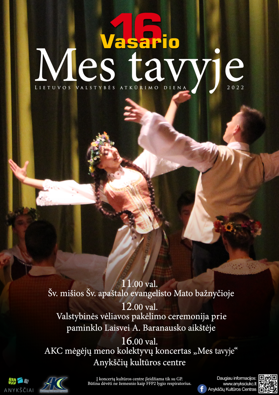Pasveikinti Lietuvą 16 val. taip pat susirinks ir mūsų kultūros centro kolektyvai, stebinsiantys gražiausiais savo pasirodymais!